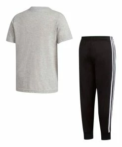 Promo ⭐ Adidas Gray Cartoon Logo Crewneck Tee & Black Signature Stripe Joggers – Boys For Kids 🥰