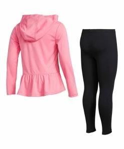 Promo ✨ Adidas Bliss Pink Logo Ruffle-Hem Hoodie & Black Logo Leggings – 👧 Girls For Kids 🌟