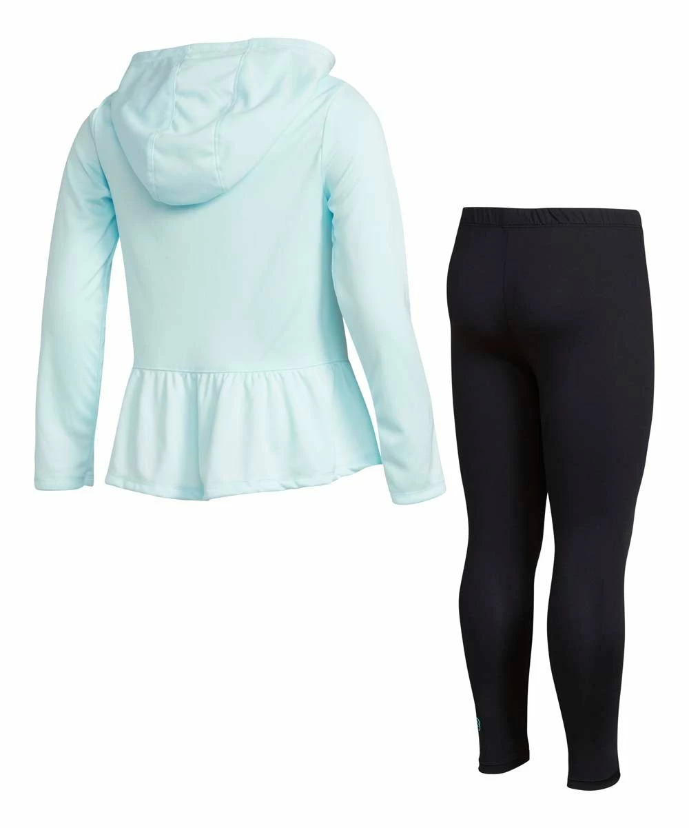 Add flair to your little sport’s athletic-wear with this hooded long-sleeve top featuring a back ruffle. Coordinated stretch-rich leggings complete the look.