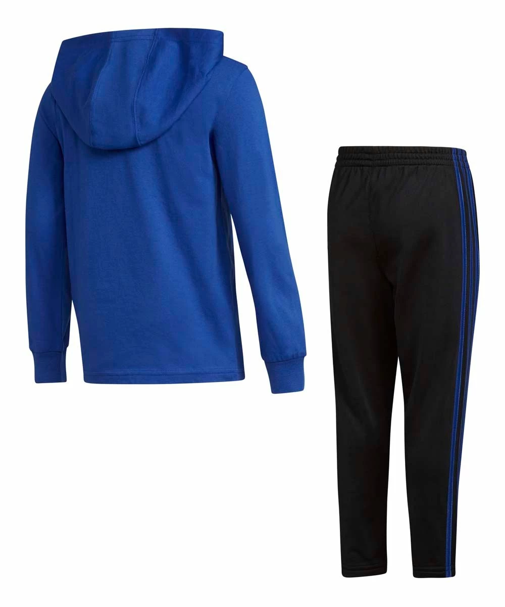 Keep your little sport comfy on and off the field with this cotton-blend hoodie and track pants set in coordinated colors.