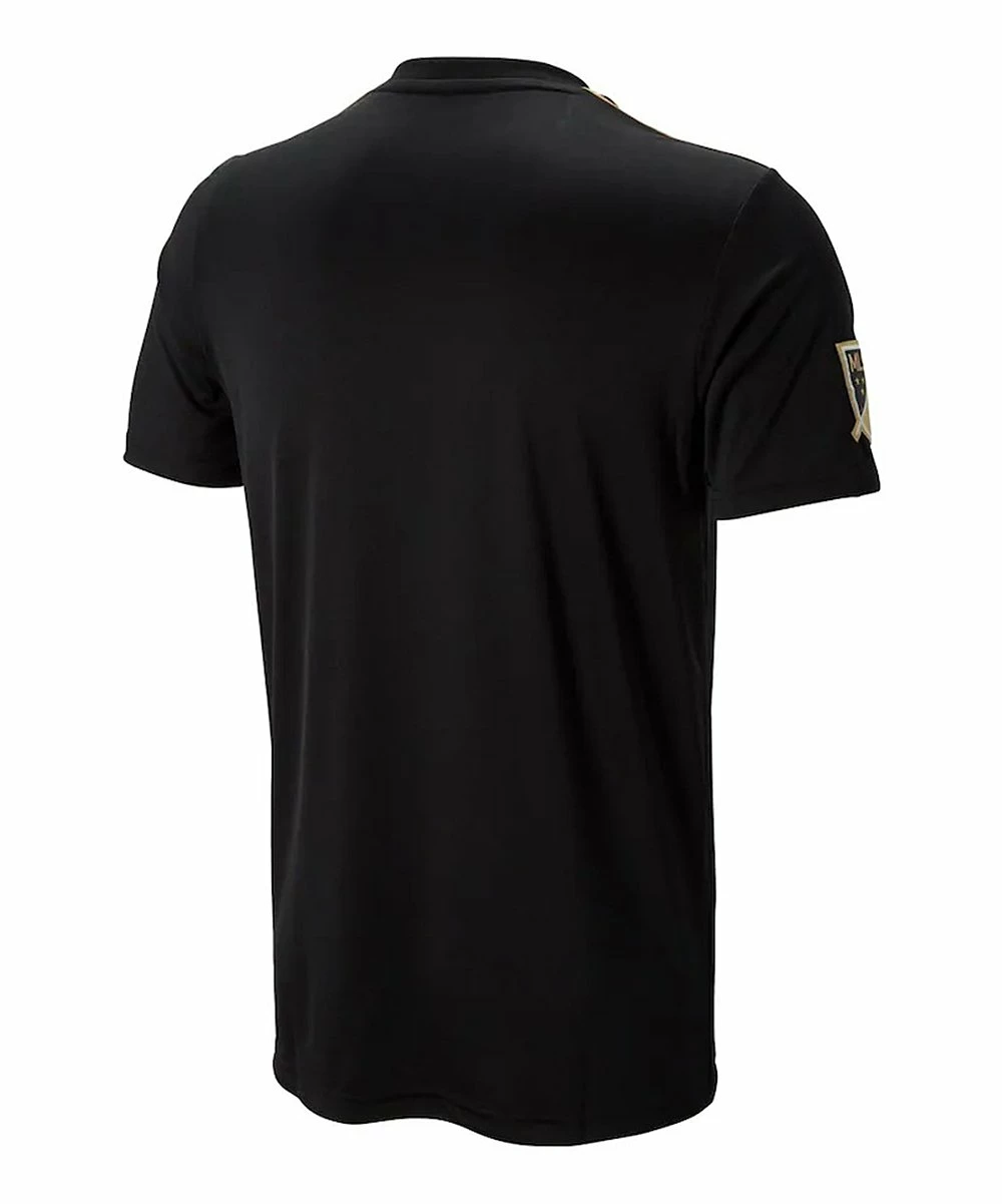 He can build a game day look inspired by the field in this replica jersey that boasts bold logo detail, breathable mesh inserts and sweat-wicking fabric to help him stay cool in the stands.